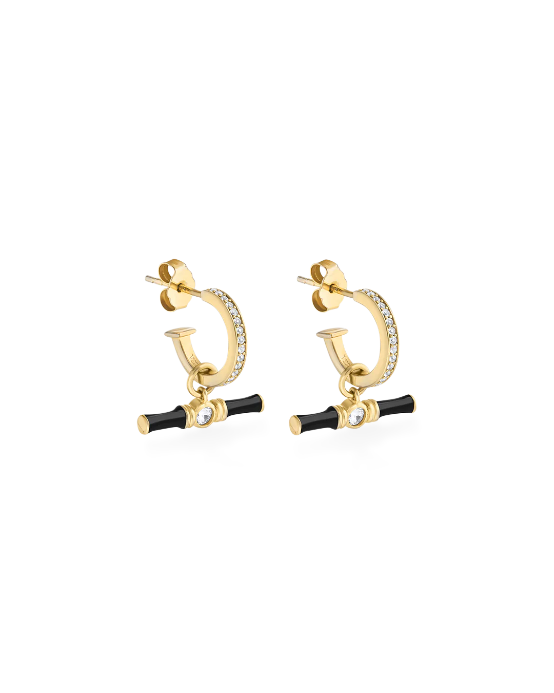 Dyllan Hoop Earrings + Black Enamel T-Bar Charms