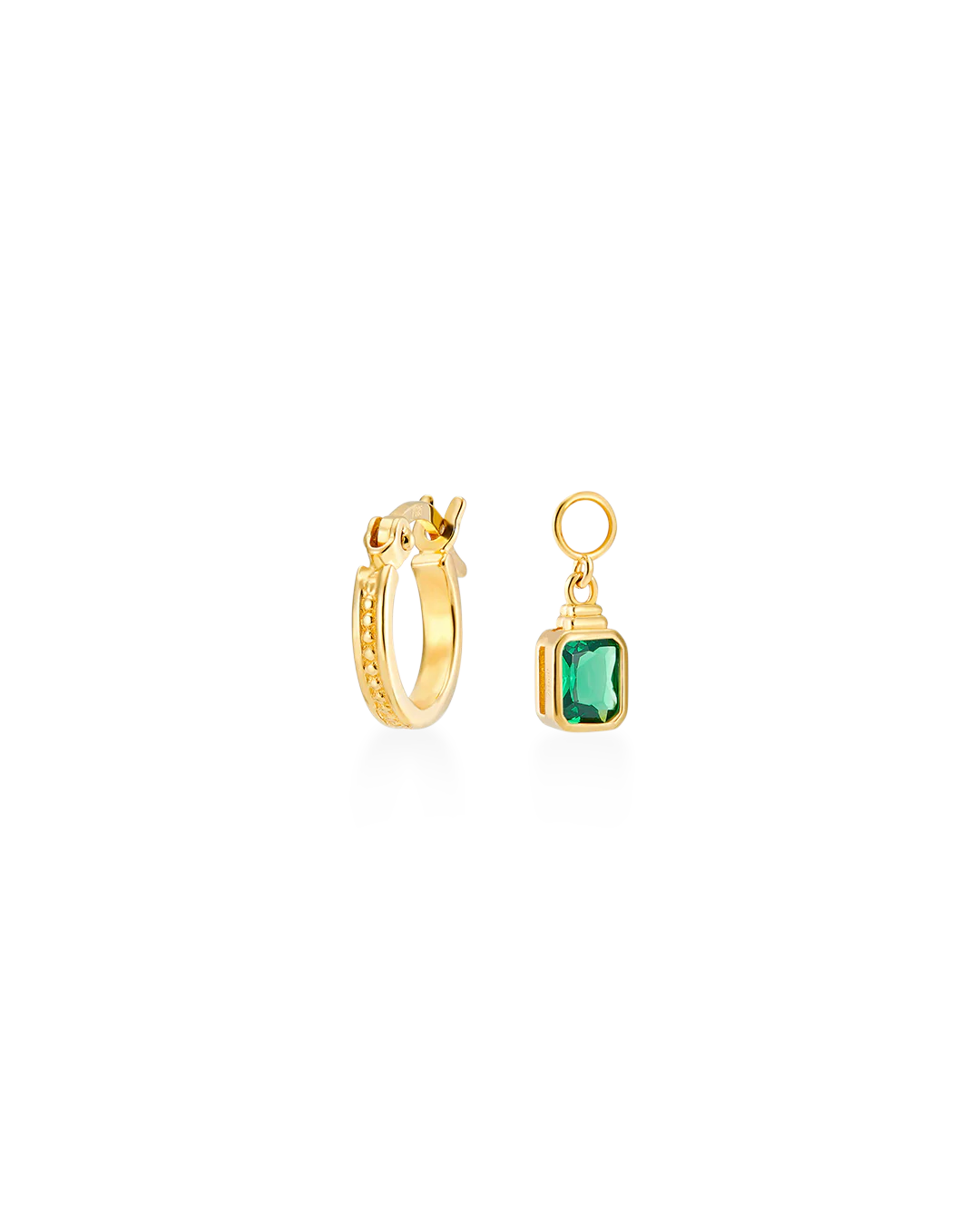Vintage-inspired and sustainably crafted, these two-in-one Frances Gold Hoop Earrings with Emerald Cut Charms in Emerald Green derive from the debut edit of the Forever collection - a progressive response to consumerism which will see its sub-collections released seasonally.