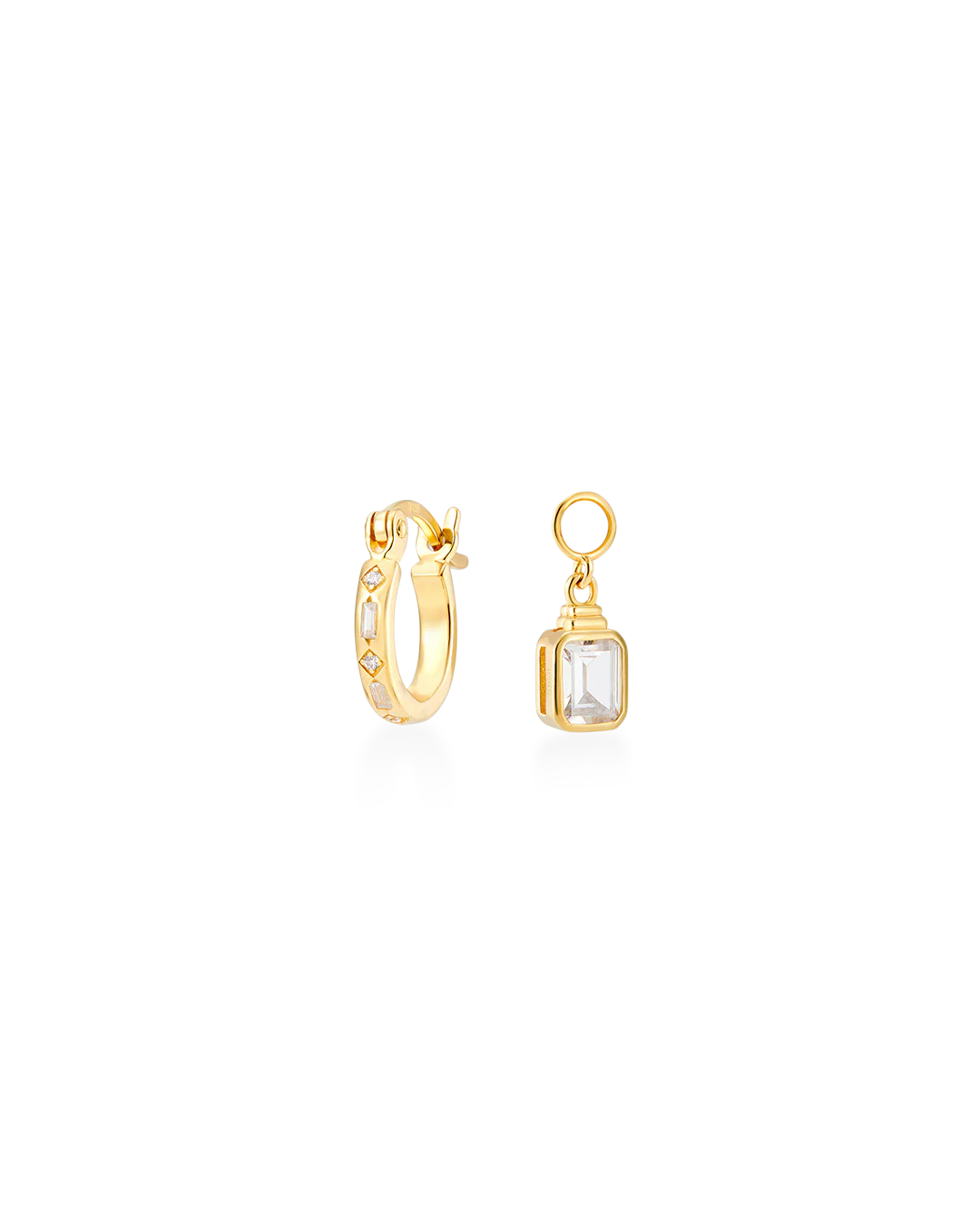 Iris Hoop Earrings + Emerald Cut Charms