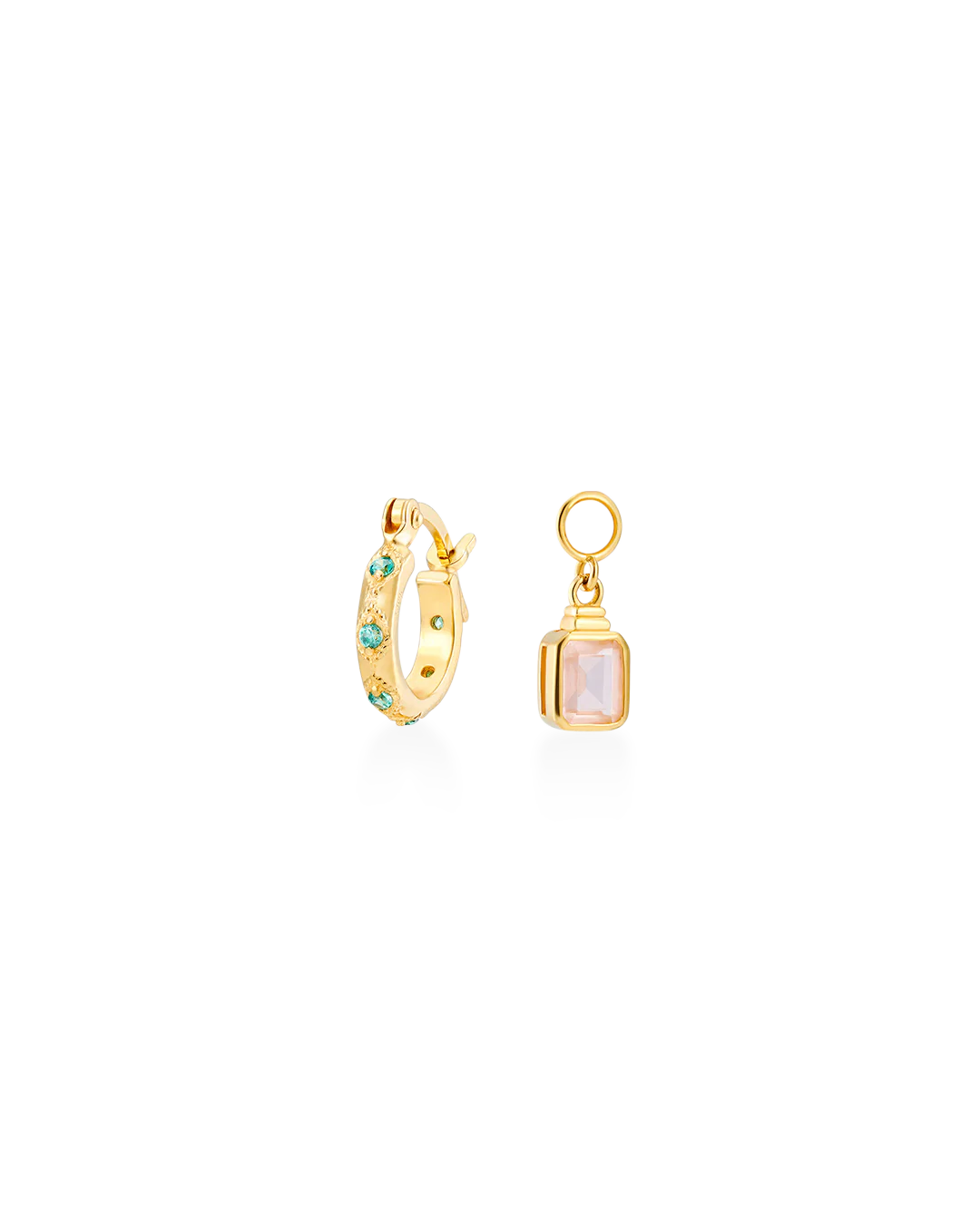 Vintage-inspired and sustainably crafted, these two-in-one Lena Gold Hoop Earrings in Mint with Emerald Cut Charms in Apricot derive from the debut edit of the Forever collection - a progressive response to consumerism which will see its sub-collections released seasonally.
