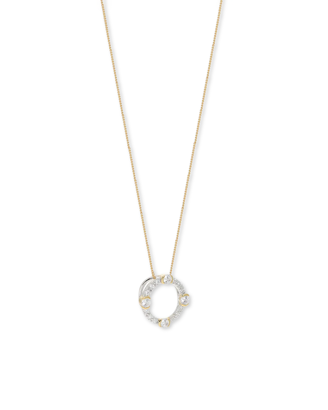 A culmination of bygone hero pieces – Laura Vann brings to you the Luna Gold Circle Necklace. Half bezel set brilliant-cut stones navigate amidst a scope of miniature round cubic zirconia, earthed in a milgrain setting. The use of two tone plating emphasises a penchant for precious materials and at once highlights V's transitional ability to guide the modern woman from throwaway to fine jewellery.