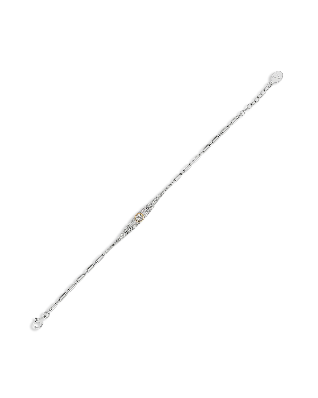 Worn elegantly on its own or stacked with your other V favourites, this bracelet is crafted from rhodium-plated recycled sterling silver with luxurious 18ct gold vermeil detailing.