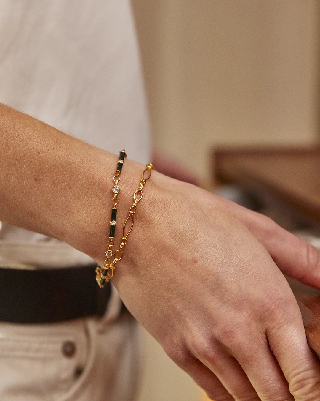 One of a kind, this 18 carat yellow gold plated solid Sterling Silver chain bracelet has vintage inspired links that are bespoke designed by Laura, meaning you can't find a bracelet like this anywhere else! Part of the Forever collection, this bracelet is perfect for layering up and favours the complementary over the replaceable.